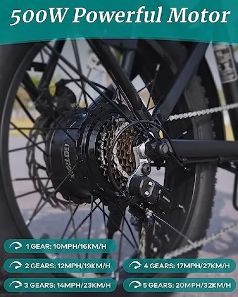 - 🚲【Powerful Riding Performance】The F2 electric bike is powered by a 500W brushless motor with a top speed of 20MPH. With a 7-speed system, it suits diverse riding needs. Combined with 20″*3″ tires, it’s fit for urban commuting, school, or outdoor exploration. 📌Pre-ride: Ensure proper battery installation, turn the key clockwise to the end to activate battery.
