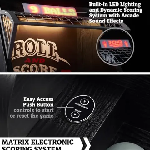 - CLASSIC FAMILY GAME: With its extra-long design and plug-in electronic scoring, this classic arcade game promises endless fun for the entire family. Plus, the automatic ball return system ensures non-stop rolling and scoring excitement.