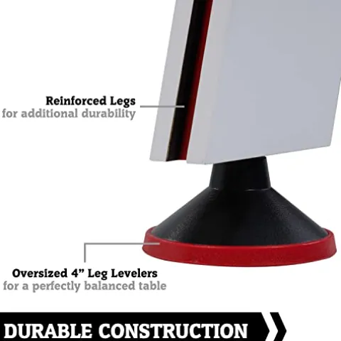 - STABLE LEG DESIGN & ROOM SIZE: The legs are made of MDF with a PVC laminated finish in an Arcade design and 4” leg levelers to even the playfield; the recommended room size for this table is 11.5’ x 7’ to allow for movement around the table