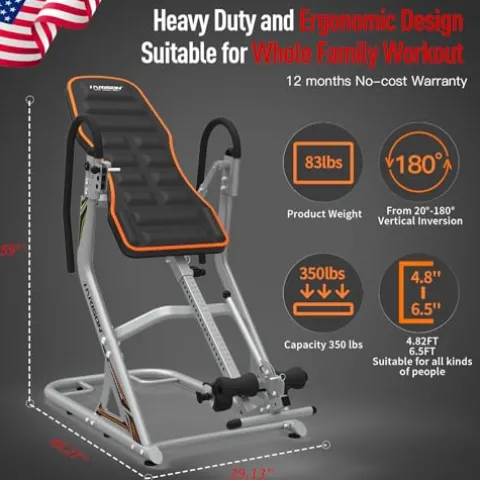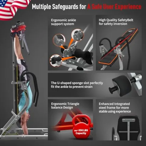 - ✅【Heavy Duty Back Inversion Table 350 LBS Capacity】Heavy duty integrated steel frame make the back stretcher machine super stable and durable. Safety belt, non-slip nuts and mat, protective pedal cover and cap, sponge foot cover, and secure handles are double securities. True balance design is the third safeguard to help you enjoy the smoothest and most comfortable inversion experience.