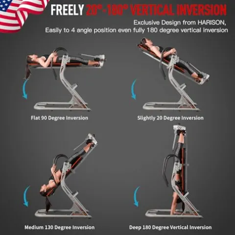- ✅【Full Range Upside Down Back Stretcher】HARISON inversion table have convenient 4 position side inversion pin, which allows for quick & safe selection of either the 20/90/130/180 degree inversion positions, you can use this inversion therapy table to exercise your back, neck, losing weight and anti-gravity beauty training, release the pressure, keep you away from the back pain or ibuprofen, enjoy your good dream. You can also fold it for easy storage