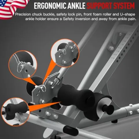 - ✅【QUADRUPLE PROTECTION SAFETY】High quality memory foam for 3D backrest make the full back stretcher for lower back pain relief stand out in the inversion equipment competition, ergonomics design fully fit your waist curve, release the pressure, and protect your health. Safety belt and ankle holders for unmatched comfort while inverting. No pinch or pain on your ankles while inverting