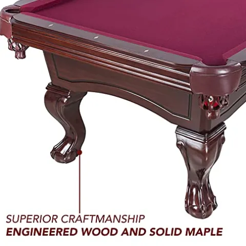 - CLASSICALLY DESIGNED – Featuring an elegant maple veneer with a multi-step furniture finish and complemented by traditional ball-and-claw feet, the Augusta 8-ft Billiard Table has timeless style. It’s the perfect addition to your basement, man cave, or game room.