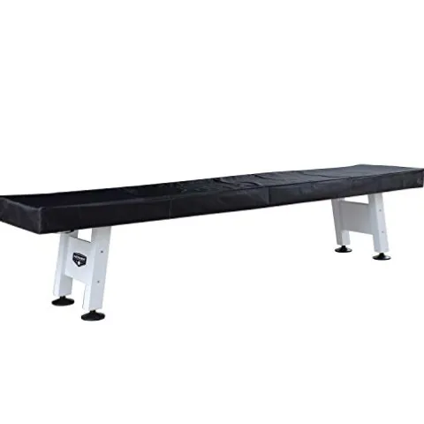 Experience the thrill of competitive shuffleboard right in your own home with the Hathaway Crestline 12-Ft Indoor/Outdoor Shuffleboard Table in white. Designed to withstand the elements, this table features a 1.25-inch composite weatherproof playfield for responsive and accurate gameplay, no matter the weather conditions. The sleek aluminum frame, bright-blue cloth, and gloss white cabinet not only provide protection but also add style to your game room, patio, or deck. With dimensions of 144-in L x 29-in W x 31-in H, this table is perfect for family fun and entertaining guests. Plus, enjoy peace of mind with a one-year manufacturer warranty included.