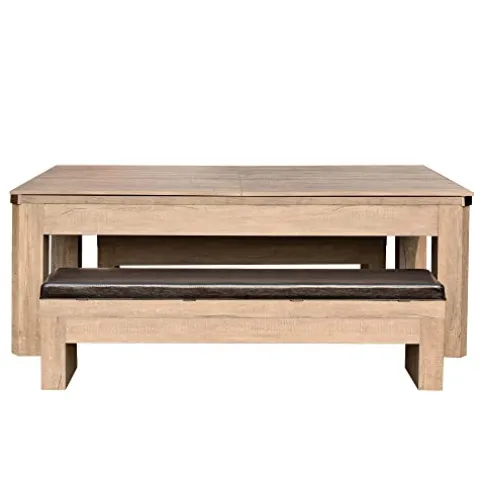- TAKE A SEAT – Two benches with soft, padded seats provide a convenient place to sit while building a puzzle or concentrating on a board game match. Each seat lifts to reveal internal storage, allowing you to easily store your pool and table tennis accessories.
