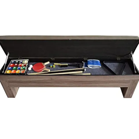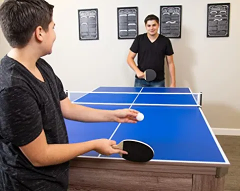 - TRIPLE THE FUN – This multi-functional game table offers three options for your game room, rec room or office. Switch from billiards to table tennis with a simple, 2-piece top. When it’s time for a break, flip the top for a handsome, dining surface.