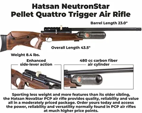 - IN THE BOX: 1 x Hatsan NeutronStar NEW .22 Cal Air Rifle; 1 x Pack of 250ct Pellets; 1 x Pack of 100x Paper Targets