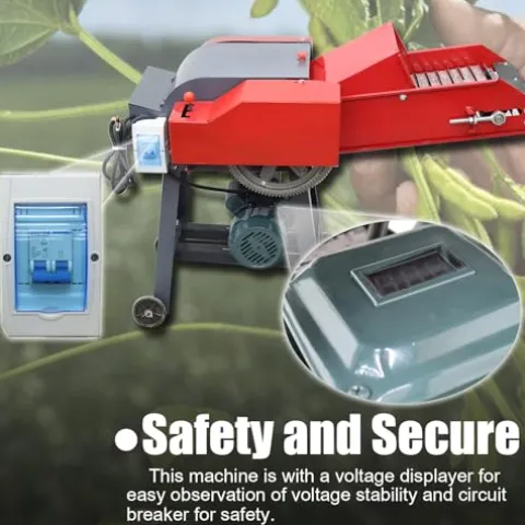 The HayWHNKN Chaff Cutter is a powerful and efficient solution for processing animal feed, designed to streamline your feeding operation. With a robust 3KW motor and a high yield of 400-800 kg per hour, this machine effortlessly handles various types of grass through its widened feeding port and automatic conveyor belt. Its adjustable cutting length and dual gear options provide versatility to meet your specific needs, while the intuitive voltage display ensures operational stability. Safety is prioritized with lock nuts and a circuit breaker, making it a secure choice for any farm. Built from durable cast iron with a sleek red finish, this chaff cutter not only performs exceptionally but is also easy to transport and store, enhancing your overall productivity.