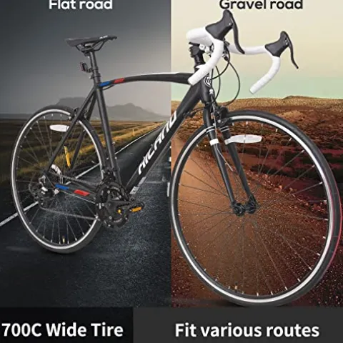 - 【700C Tires】It takes less energy to keep the bike at speed. 700c wheels have less rolling resistance, making them more efficient, you can ride further using the same amount of energy. These wheels also have better rollover capability, because have a larger circumference, they can more easily roll over potholes, bumps, branches, roots, and other obstacles on the road or trail.