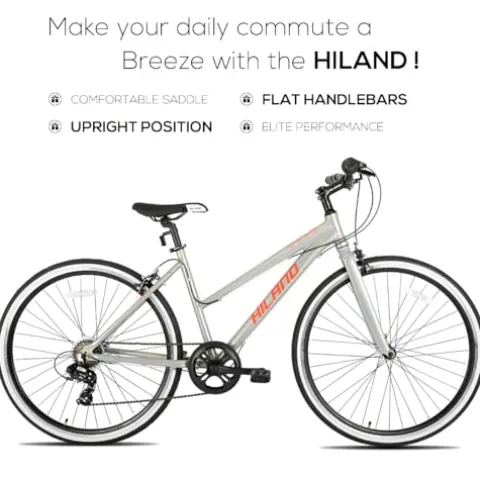 The Hiland Hybrid Bike with Shimano Drivetrain offers a smooth and efficient ride with its 7-speed system, making it ideal for commuting in the city. Designed for both men and women, this versatile bike features 700C wheels for a comfortable and stable journey. The sleek silver color adds a touch of style to this HH HILAND bike, making it a reliable choice for daily transportation needs.