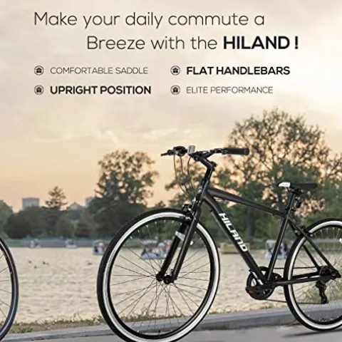 - HYBRID BIKE: Experience the comfort and style with hiland hybrid bicycle, featuring a cushioned seat and mountain handlebar for smooth commutes, outdoor fitness, and touring adventures.
