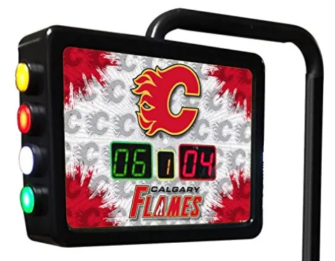Enhance your shuffleboard game with the Holland Bar Stool Co. Calgary Flames Electronic Shuffleboard Scoring Unit. This officially licensed unit features digitally printed, full-color graphics that bring an authentic touch to your gaming experience. The color-coded, push-button counter allows for easy tracking of 2 player scoring and game progress. Measuring 15″ in width, 11 1/2″ in height, and 3 1/2″ in depth, this scoring unit is compact yet functional. The 51″ tall support extends the unit over the playfield, providing clear visibility. Versatile and adaptable, this unit can be mounted directly to the side of almost any game, with a mounting plate and shims included for convenience. Elevate your shuffleboard setup with this high-quality electronic scoring unit.