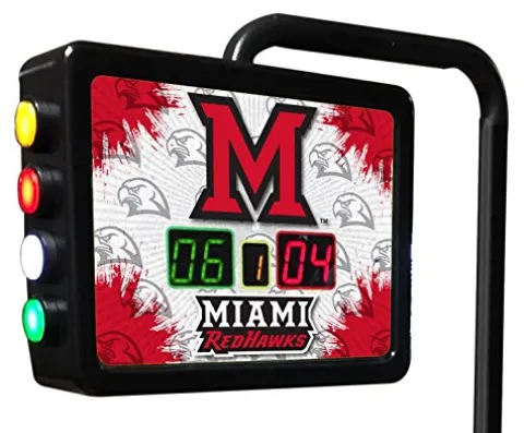 Enhance your shuffleboard game with the Holland Bar Stool Co. Miami (OH) Electronic Shuffleboard Scoring Unit. Officially licensed with digitally printed full-color graphics, this scoring unit features a color-coded push-button counter for 2-player scoring and game tracking. Measuring 15″ (W) x 11 1/2″ (H) x 3 1/2″ (D), the unit is supported by a 51″ tall stand that extends over the playfield. Versatile and adaptable, it can be mounted on almost any game with the included mounting plate and shims. Elevate your game room with this sleek and functional scoring unit.