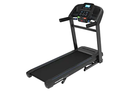 The Horizon Fitness T202 Foldable Treadmill Running Machine is the ideal choice for home workouts, combining reliability and durability with convenience. Featuring a FeatherLight folding frame, this treadmill offers the sturdiness of a traditional model with the added benefit of easy storage. With Bluetooth speakers, EasyDial controls, and a tablet holder, you can personalize your workout experience while staying entertained. The T202 boasts a spacious 60″ x 20″ running area, a 12% incline, and a maximum speed of 12 MPH, making it a step up from the T101 model. Designed for user comfort and safety, this treadmill includes Horizon’s variable response cushioning to support your joints and provide a knee-friendly workout. With a weight capacity of 325lbs, this treadmill is both practical and high-performing, ensuring a consistent training experience from the comfort of your home.