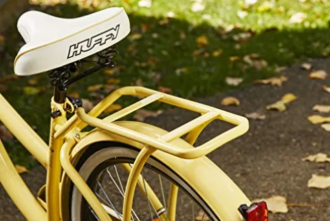 The Huffy Woodhaven 26 Inch Women’s Cruiser Bike in Cream Yellow offers a timeless design with modern features for a comfortable and enjoyable ride. This single-speed cruiser boasts a sturdy steel cantilever frame, white wall tires, and swept-back handlebars for a classic look. Practical additions like the rear rack and front basket provide ample storage space, while the quick-release seat clamp allows for easy height adjustments. The dual-density padded seat and Kraton rubber grips ensure a comfortable ride, while the steel frame and oversized fork offer durability and stability. With low-maintenance features like a chainguard and front/rear fenders, this cruiser bike is perfect for leisurely rides to the beach or park.