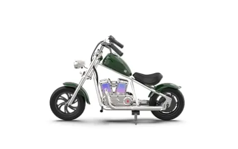 The Hyper GoGo Cruiser 12 Deluxe is the ultimate electric motorbike for kids, combining thrilling performance with safety and innovation. Featuring a durable yet lightweight steel frame, this bike is easy for young riders to maneuver, weighing just 33lbs. Its powerful 24V 160W motor delivers impressive rides up to 7.5 miles per charge, with speeds reaching 10 MPH. Safety is paramount with all-terrain 12×3″ tires, a rear hub brake system, and an IP4 water resistance rating. The bike stands out with its interactive features, including a simulated fog emission and Bluetooth speaker for music, creating an immersive riding experience. Parents can engage with the advanced app integration to ensure safety and share the joy of their child’s adventures. Available in a striking Pine color, the Hyper GoGo Cruiser offers an exciting ride and peace of mind.