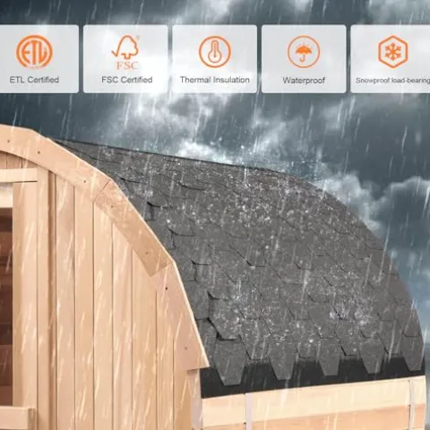 - BARREL DESIGN & EFFICIENT HEATING:Our barrel sauna features a unique barrel design and is equipped with a powerful 6KW Harvia sauna stove. It can better, preserve the heat. It can better enhance the sauna experience. Ensuring the best steam sauna experience every time