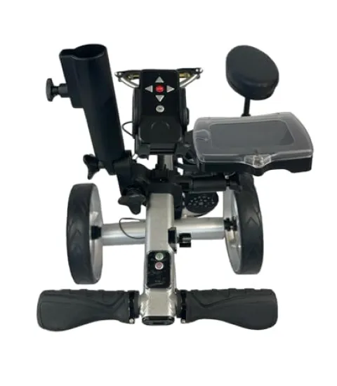 - Remote control, seat, scorecard holder, tee and ball holder, umbrella holder, cup holder, USB port, 2 gifts: Cellphone holder and rain cover.