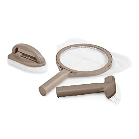 - Purespa maintenance kit features multiple tools to keep your hot tub running optimally; Includes a curved brush, mesh skimmer, and scrubber