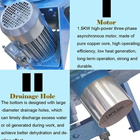 The INTSUPERMAI Centrifugal Industrial Dehydrator is designed for efficient and reliable performance in various industries, including food processing and wool washing. Crafted from durable stainless steel with a heavy cast iron base, this dehydrator ensures stability during operation while minimizing vibrations. It features a high-efficiency centrifugal starting flange for smooth startups and rapid braking, enhancing safety and performance. The robust main shaft, supported by premium bearings, optimizes power usage while maintaining low noise levels. With a simple structure that promotes high processing efficiency, this machine is both user-friendly and effective. For those requiring larger capacities, it can accommodate up to 485 lbs (220 kg), making it a versatile choice for your dehydration needs.