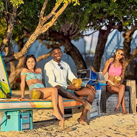 - PREMIUM WHEELED BAG: the travel roller backpack is an amazing upgrade, allowing you to either use the supportive, cushioned straps to carry your SUP or simply and freely wheel your iROCKER SUP behind you. There’s an additional bungee strap on the front you can use for the pump too, if you’re finding it hard to fit. On the side, there are mesh pockets for personal belongings and several handles for easy carrying and portability.