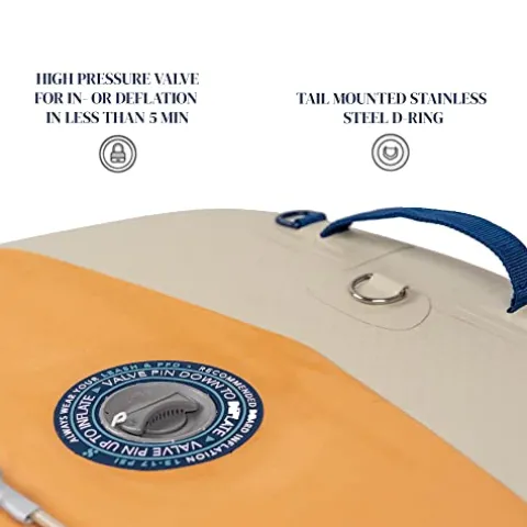 - DESIGNED IN CALIFORNIA: This SUP convinces with its ultra durable and modern Design. Constructed with Military-Grade PVC material. Forget about dings or blown seams thanks to our AIRTECH FUSION LITE manufacturing process that’s durable and lightweight with a unique bond that can’t be achieved via traditional hand-gluing.