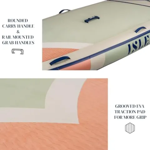 - INCLUDES iSUP ACCESSORY BUNDLE: All inflatable stand up paddle boards come with a complete package that includes: Adjustable Carbon Shaft / Nylon Blade Paddle, High-Pressure Pump, ISLE Sticker Pack & Manual, and Snap-In Travel Fin.