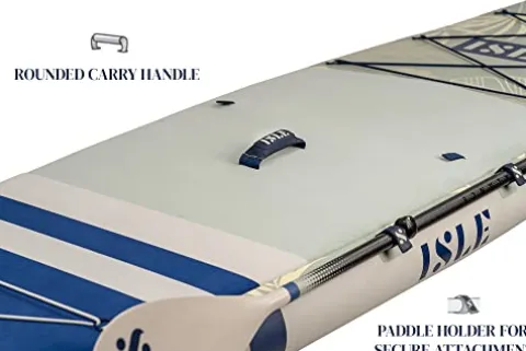 - INCLUDES iSUP PUMP AND ACCESSORY BUNDLE: All inflatable stand up paddle boards come with a complete package of paddle board accessories for compact carry and travel. This includes a Paddle Board backpack, adjustable carbon shaft/nylon blade paddle, high-pressure pump, snap-in travel fin, coil leash, ISLE sticker pack & manual.