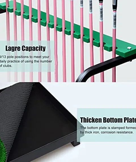 - 【Large Capacity】: Golf club rack can store 9/13 clubs, you can enjoy your leisure time happily. 9 pcs : 50 x 27.5 x 72cm/19.7 x 10.8 x 28.3 inch; 13 pcs: 70 x 27.5 x 72cm/19.7 x 10.8 x 28.3 inch.
