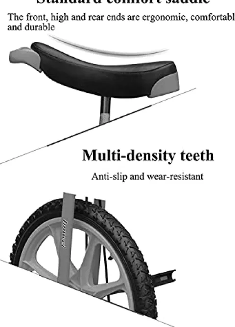 - ♥ Comfortable Saddle: The unicycle adopts a standard comfortable saddle and is designed according to ergonomics. The front high and low design ensure balance, and the saddle has a front and rear armrest design, which is not only comfortable and durable, but also safe to use.