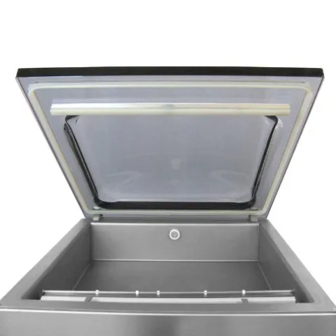 - Extremely easy to operate. Equipped with ONE sealing bar Located at the front side of the chamber with one extra wide seal element. Can use vacuum bags of up to 18″ x 20″ (470 mm x 508 mm) Impulse sealing system with three temperature settings. (Low, Medium and High)