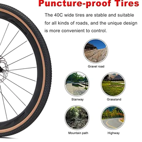 - 【RUGGED & PUNCTURE-PROOF TIRES】- Wider 700x40c tires for added versatility and stability on rougher terrain. Fast Rolling high traction tread for faster and more comfortable ride. Also, provides good grip on uneven surfaces like tarmac roads or pavement.
