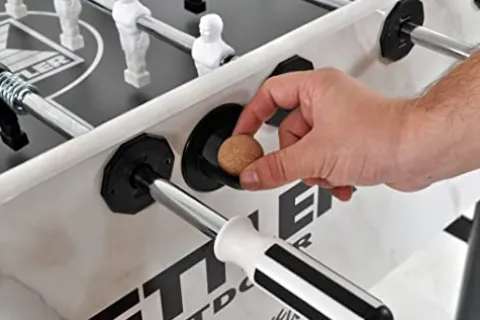 - COMPLETE FOOSBALL ACCESSORIES – Included with the soccer table are five (5) resin balls and five (5) cork balls, so you can start your game with family and friends, right away and a premium quality storage cover to keep your table dust-free and properly stored when not in use.