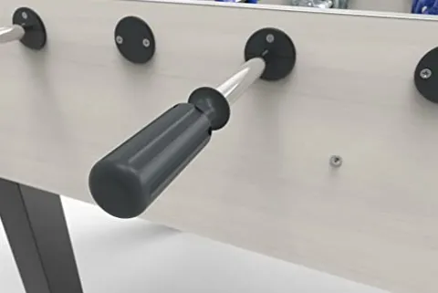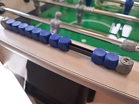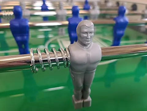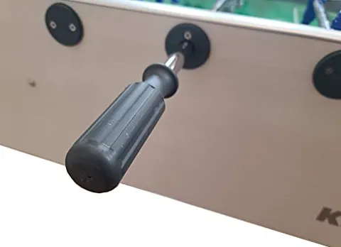 - Unbreakable players molded (pre-attached) on the rods; elongated playing handles; 360-degree goalie rotation
