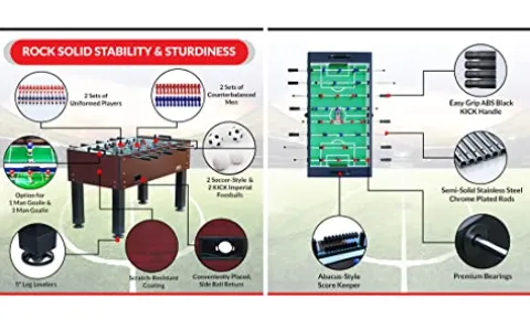 Bring the excitement of professional foosball into your home with the KICK Ambassador 55″ Foosball Table. Crafted by the renowned brand KICK, this wooden table stands out with its sleek design and sturdy construction. Measuring 55″ in length, 30″ in width, and 36″ in height, it offers ample space for intense gameplay. The table features counterbalanced and uniformed men for smooth and fair matches, ensuring hours of entertainment for family and friends. With its exceptional durability and elegant appearance, the KICK Ambassador is backed by a lifetime warranty on new purchases, making it a reliable choice for foosball enthusiasts.