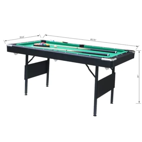 - Accessories Included: A set of billiard balls, two cue sticks, a billiard brush, a ball triangle, two pieces of chalk, a table tennis table top, two paddles, and 2 table tennis balls, net and post set.