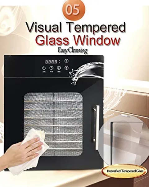 - 12-layer 304 stainless steel rack, tempered glass door, smart temp. controller, hot-air convection,Rapid dehumidification, machine size:400*465*480mm (15.75″x18.31″x18.90″)