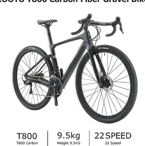 Experience the thrill of high-performance cycling with the KOOTU Carbon Gravel Road Bike, a black carbon fiber racing bicycle engineered for both speed and versatility. Featuring the precise SHIMANO 105 R7000 22-speed drivetrain, this bike ensures smooth, reliable shifting and effortless riding. Constructed with T800 Japanese carbon fiber, it boasts an ultra-lightweight frame at just 9.5kg (20.94lb), offering remarkable strength and rigidity. The CST C1870N 700*40C tires provide exceptional grip and control, perfect for navigating through mud, water, and sand with confidence. Enhanced with a double thru axle design for improved stability and powerful disc brakes for superior stopping force, this bike is built to conquer any terrain safely. Ideal for cyclists seeking a premium ride, the KOOTU Carbon Gravel Road Bike promises unmatched performance and adventure.