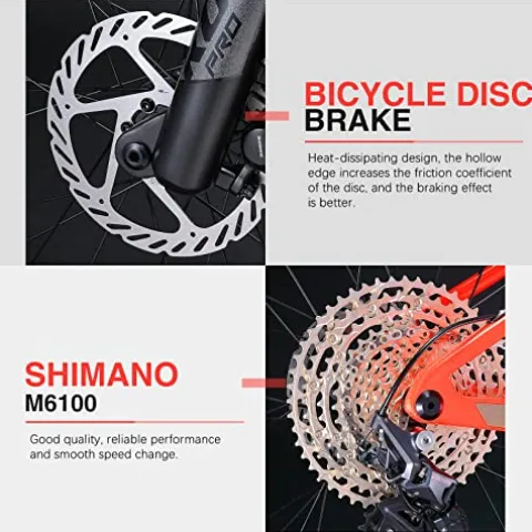 - 【Professional Drivetrain】:A professional drivetrain from SHIMANO with 12 Speeds, a wide range of gears gives you more control for climbing,for room to get low on descents, corners and jumps. Including Shimano SHIFT LEVER, REAR DERAILLEUR, CASSETTE SPROCKET and DISC BRAKE.