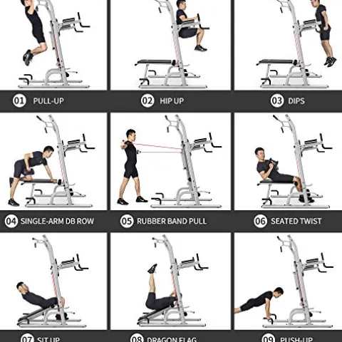 - 【All In One Multifunctional Power Tower】Leikefitness power tower is a multi-functional dip station that supports vertical knee raise, push-ups, dips as well as pull-ups, which help tone and target your arms, core, shoulders, chest, and back for a stronger upper bodyWith a variety of station and positions, you can all-around training abdominal muscles, arm, back, chest, shoulders and leg muscles.