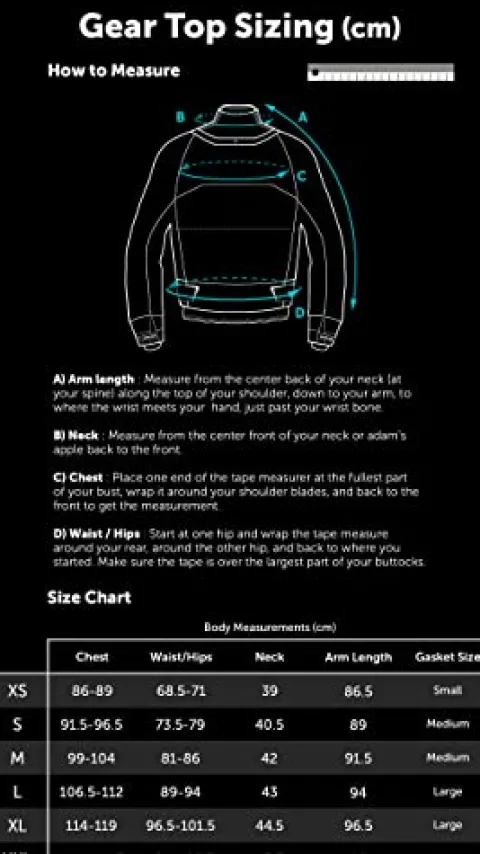 - Latex gaskets on neck and wrist closures for an optimal fit
