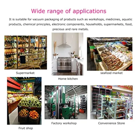- 【WIDE APPLICATION】This series of vacuum packaging machines use composite film bags to heat seal all kinds of solid, powder, paste and liquid of all kinds of food, medicine, local products aquatic products, chemical raw materials, hardware and electronic components.It can automatically seal the packaging bag immediately after it is vacuumed.The vacuum degree in the bag is high, the residual air is small,which is convenient for transportation and storage.