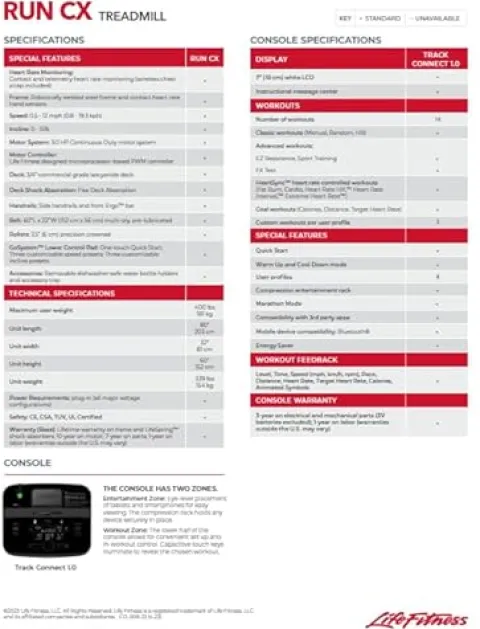 - CREATE YOUR OWN WORKOUT EXPERIENCE Enhanced Bluetooth in the Track Connect 2.0 console enables pairing with an Apple Watch. Plus, the built in device holder makes it easy to access on-demand workouts and tracking on the Life Fitness Connect app or employ any other fitness apps that you feel comfortable with.