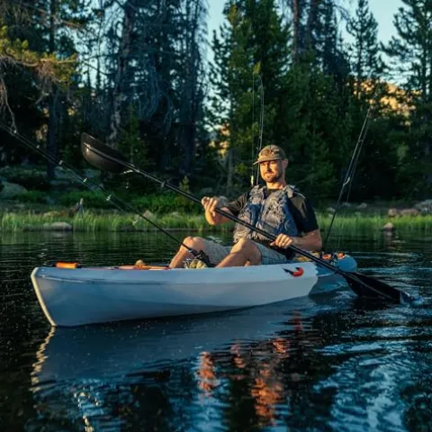 The Lifetime Stealth Angler Kayak, in a striking Eclipse Fusion color, is designed for the dedicated angler seeking comfort and efficiency on the water. With its adjustable padded seat and multiple footrest positions, it ensures hours of comfortable fishing. The kayak’s high-density polyethylene construction is UV-protected, promising durability and resilience against the elements. Smart Flow Scupper Holes expertly manage water drainage, while the skeg wheel enhances tracking and facilitates easy transport. Offering a Triple Threat Fishing Configuration with two flush mount and one deck mount rod holder, it caters to serious fishing enthusiasts. The hull design guarantees ultra stability and excellent tracking, while convenient storage solutions like the beneath-deck hatch and rear tankwell with bungee lacing keep gear secure and accessible. Effortlessly portable with four carry handles, this sit-on-top fishing kayak is your perfect companion for memorable fishing adventures.
