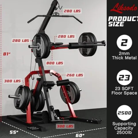 - Sturdy Structure Machine – Liksodo workout machine built by commercial-grade 14 gauge black powder-coated steel frame and high-strength cables. The sizes of the assembled lever gym machine are 60 in(L) x 55 in(W) x 81 in(H). Note: You will receive 2 packages from us.
