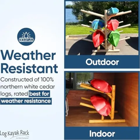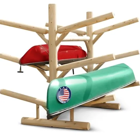 - PREMIUM MATERIALS AND CRAFTSMANSHIP: Built with 100% Northern White Cedar from the Upper Peninsula of Michigan, this freestanding kayak rack offers both functionality and aesthetics, perfect for lake homeowners. Each joint is meticulously glued and screwed for enhanced longevity, utilizing glued mortise and tenon joinery. Handcrafted and finished by skilled Log Artisans in Northern Wisconsin, this rack promises unmatched durability and a beautiful finish that complements any outdoor setting.