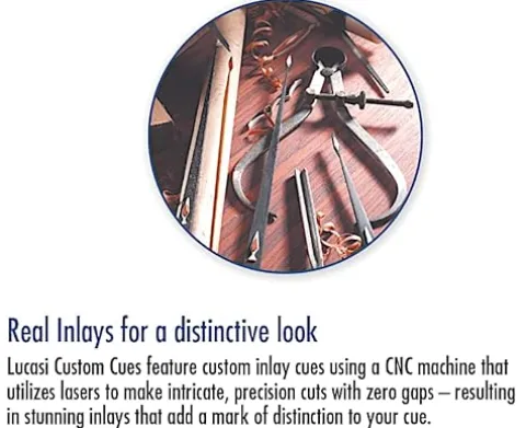 The LUCASI LZC53 Custom® Pool Cue embodies precision and performance for serious pool players. Crafted by LUCASI, this cue features a Quick-Release Uni-loc joint for quick assembly, a Zero Flexpoint Solid Core Low Deflection technology shaft with a professional taper for enhanced accuracy, and a Premium Tiger Everest tip for superior ball control. The wrapless handle ensures a smooth slip stroke, while the 4-piece cue butt construction provides a solid hit and increased durability. Elevate your game with the LUCASI LZC53 Custom® Pool Cue.