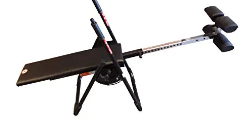 The Mastercare MINI-MINI Inversion Table in Black/Black offers a unique solution for natural spinal decompression, ideal for preventing and rehabilitating back, neck, shoulder, and knee issues. Its patented moving backrest sets it apart, ensuring quality and safety. This portable and affordable model folds down compactly, making it convenient for use anywhere. With a weight capacity of 220 lbs., it caters to users of all sizes, including gymnastic athletes needing decompression pre and post intense training sessions.