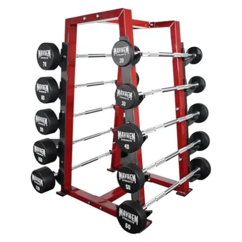 Enhance your strength training routine with the Mayhem Strength Fixed Straight Weight Barbell Set. This set includes ten fixed-weight barbells ranging from 20 to 110 pounds, allowing you to focus on your form and technique without the need to adjust weights. Crafted with precision, each barbell features an ergonomic straight bar design for a neutral wrist position, ideal for heavy and compound lifts. Built to last with high-quality materials and a 5-year warranty, these barbells are perfect for men, women, experienced athletes, and beginners alike. Enjoy a full-body workout with these versatile barbells designed for powerlifting, bodybuilding, functional fitness, and traditional weighted exercises. Proudly made by a US-based, veteran-owned company, the Mayhem Strength Fixed Straight Weight Barbell Set is the ideal companion for your weight lifting journey.