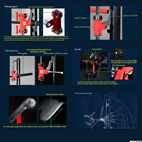 - Maximum Safety: Smith Structure,Sliding Support, Safety Catch Hooks, and Rubber Stopper for the maximum safety.
